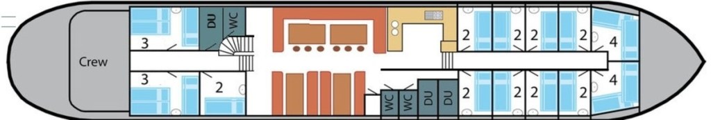 Bij overnachting biedt het schip plaats aan maximaal 32 personen (34 bij gebruik van de twijfelaars)
